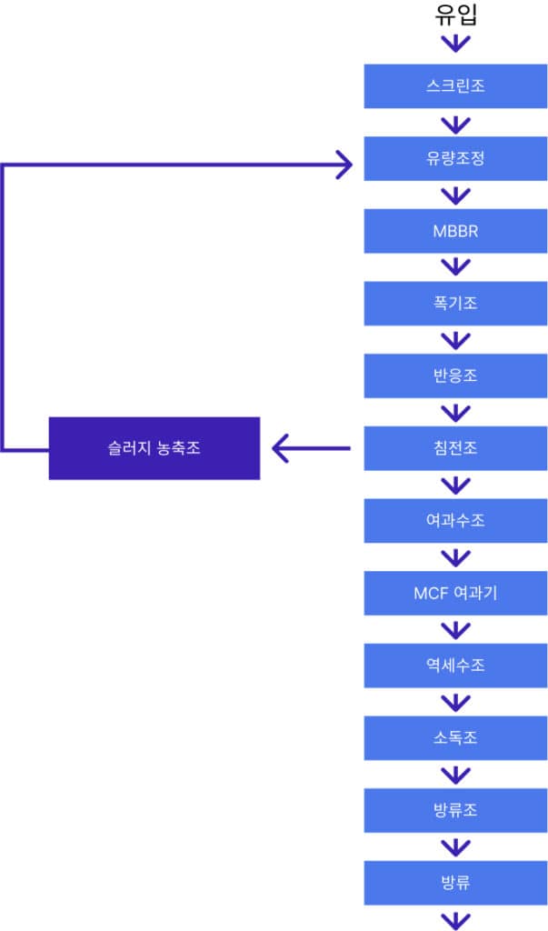 이처럼 병원폐수는 일반하수에 비해 고농도의 대장균을 함유해 활성슬러지 공법만으로 한계가 있고 배출기준을 부합할 수 없습니다.