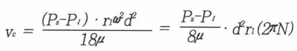 Где Vc - конечная скорость оседания (отдельной частицы осадка), а G определяется как отношение искусственного центробежного ускорения, обусловленного вращательным движением, к ускорению силы тяжести (g).